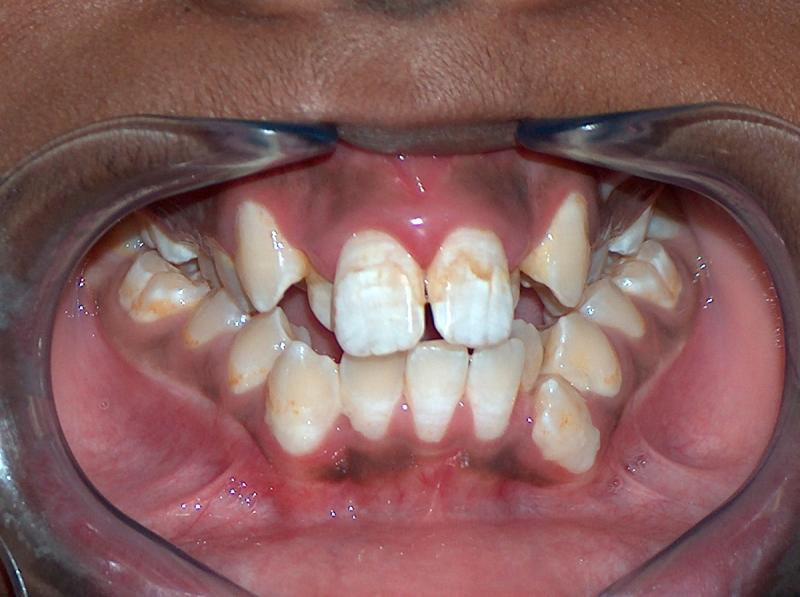 Collapse Jaw, Displaced Cuspids, Frontal Crossbite, Severe Crowding